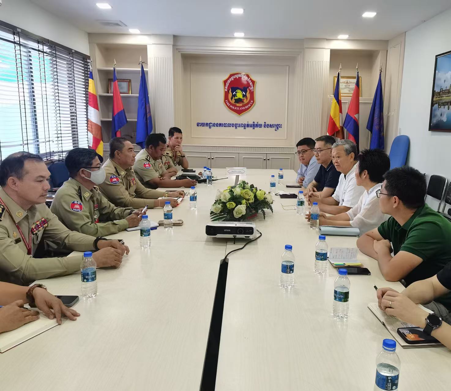 为深入贯彻落实集团公司“质量效益双提升”专项工作部署,进一步发挥中新联公司赋能实业、服务集团供销产业链的战略价值,7月10日至18日,北京国贸公司赴柬埔寨开展市场考察。此次出访特别邀请湖北3611应急装备有限公司一同参与,考察期间与柬埔寨内政部国家警察总署消防与救援警察局局长 Neth Vantha 一行举行了重要会面,重点宣介了集团旗下消防产品,为深化中柬多领域合作注入新动能。